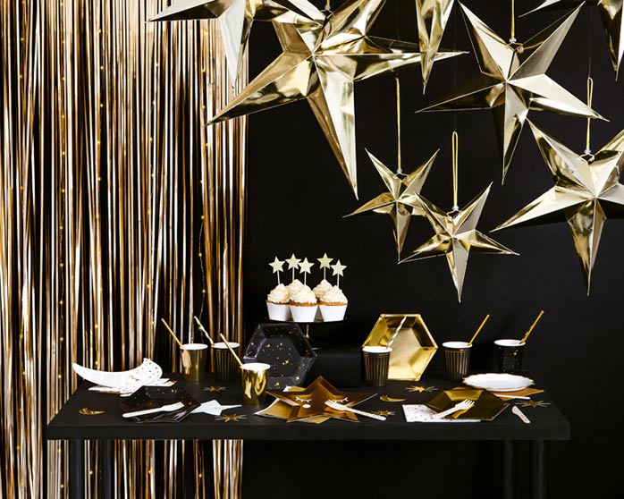 Glæder du dig også til at gå all in på glimmer og glamour på årets sidste aften? Så viser vi her fire ultra flotte og spektakulære forslag til nytårspynten, der inkluderer alle de smukke dekorationer til lokalet og nytårsborddækningen, som du skal bruge, for at fejre et brag af en nytårsaften med stil og manér.