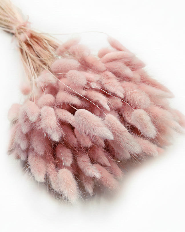 Mix også gerne de flotte sart lyserøde lagurus med andre varianter fra vores udvalg af tørrede blomster.