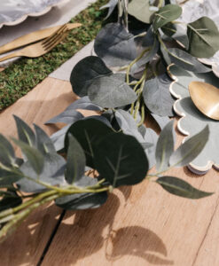 Flot og fyldig eukalyptus og oliven ranke, der udgør en utrolig dekorativ og spektakulær pynt til skønne fester som bryllup, konfirmation, barnedåb, fødselsdag og sommerfest. Brug den som flot pynt på festbordet, under loftet, omkring stolper, i vinduer, døre og over indgangspartiet til lokalet eller teltet. Uanset hvor du pynter op med den, vil den tilføre et strejf af elegance, og det er særligt perfekt, hvis I har valgt et blomstrende eller botanisk tema til festen og pynten.