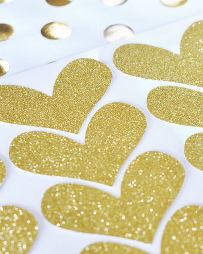 Tilføj et strejf af kærlighed til dine kreative projekter med disse smukke guld hjerte klistermærker med glitter! De funklende stickers skaber et elegant og romantisk udtryk, perfekt til alt fra gaveindpakning og invitationer til bordkort, slikposer, små æsker, små popcornbægre, scrapbøger og festpynt.