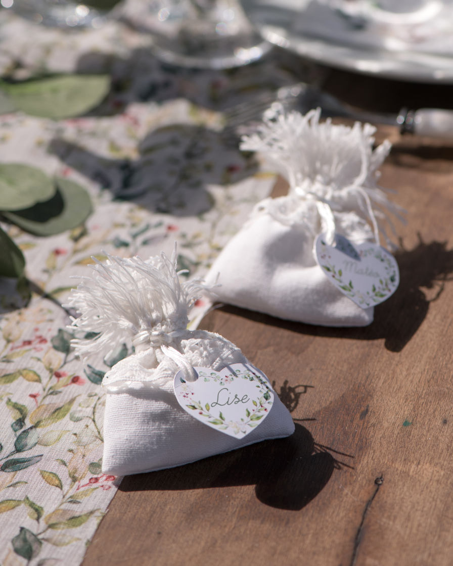 Smukke hjerte tags med blomster i water color look i sarte grønne og blush nuancer. De er perfekte til bryllupsbordet og som en del af borddækningen til fester med fokus på den utroligt flotte og meget populære blomster trend. Det ser så fint ud at binde tags’ene rundt om en stofserviet eller om en rullet eller foldet papirserviet, og de kan selvfølgelig også blot lægges på tallerkenen eller bindes om glassets stilk, eller sættes fast på en æske/goodie bag. De er et helt oplagt valg til brylluppet, hvor de er med til at skabe en romantisk stemning, og de passer helt perfekt ind i et smukt blomstret tema.