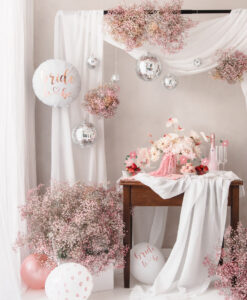 Med denne “Bride to Be” ballon kan du nemt fremhæve bruden i centrum af festen. Kombiner den med matchende balloner, blomsterdekorationer og festartikler for at skabe en gennemført og Instagram-værdig stemning.
