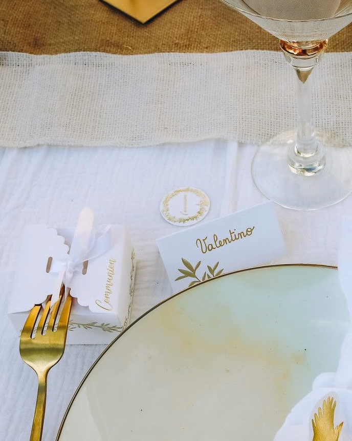 Smukke hvide bordkort med botanisk guld tryk med et luksuriøst strejf, der skaber en enkel og stilfuld elegance på festbordet. De er flotte til såvel barnedåben som til konfirmation, rund fødselsdag eller helt oplagt til bryllup.