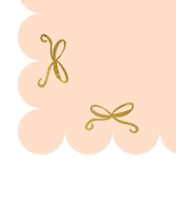 Fin lyserød papirdug med guld sløjfer og bølget kant til en smuk og praktisk borddækning til festen.