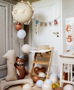 Fødselsdagsballonen indgår i vores fine nye bamse temafest serie, der egner sig perfekt til fejringen af den dejlige og mindeværdige 1 års fødselsdag. Hvis I vil pynte op og dække bord i stilen, så har vi masser af søde ting, der matcher.