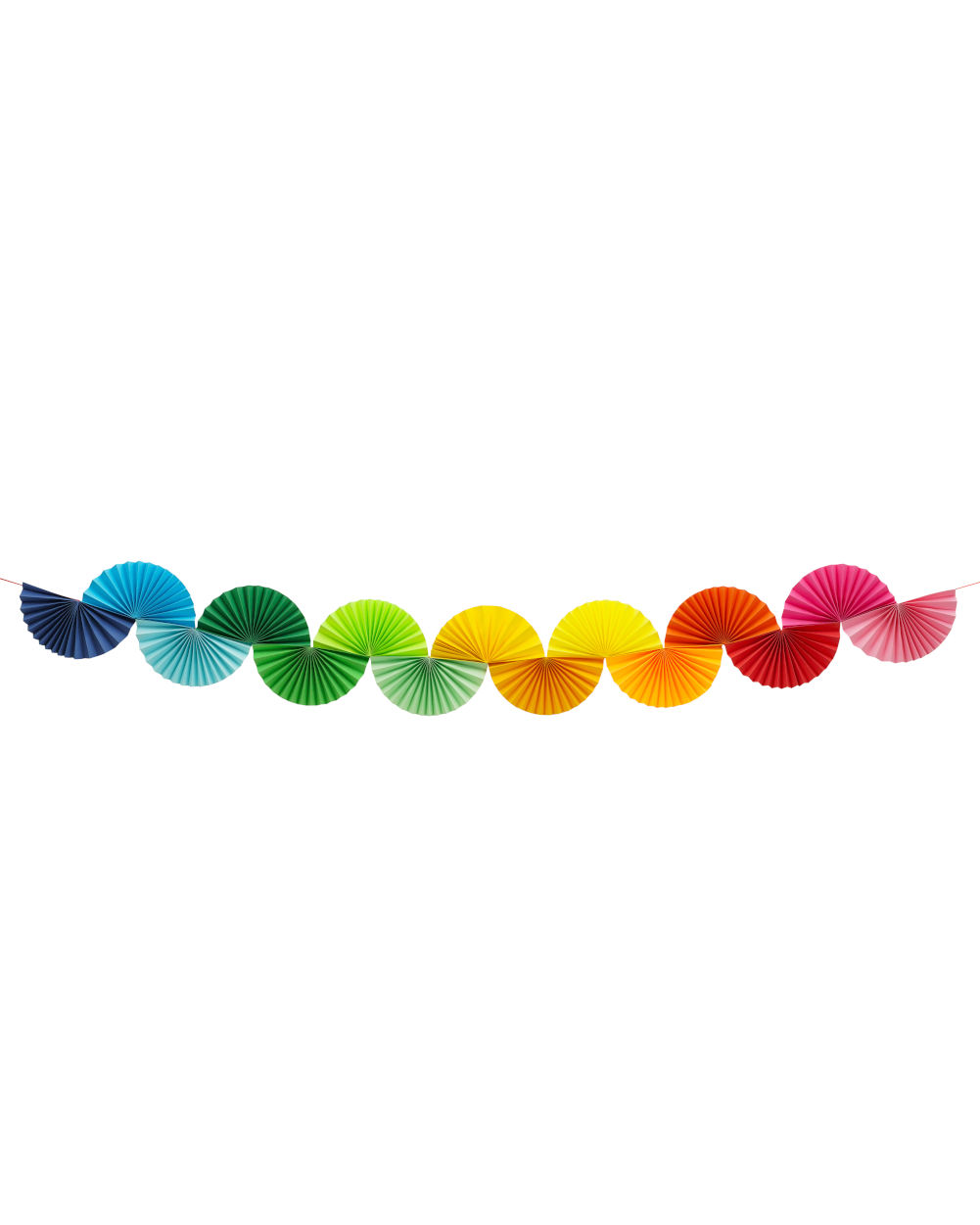 Gør festen ekstra farverig og festlig med denne regnbuefarvet guirlande med vifter i flotte klare farver! Guirlanden skaber en livlig og glad stemning, perfekt til fødselsdage, sommerfester, Pride-fejringer, børnefødselsdage med regnbue tema eller enhver særlig lejlighed, hvor der der gerne må være knald på farverne.