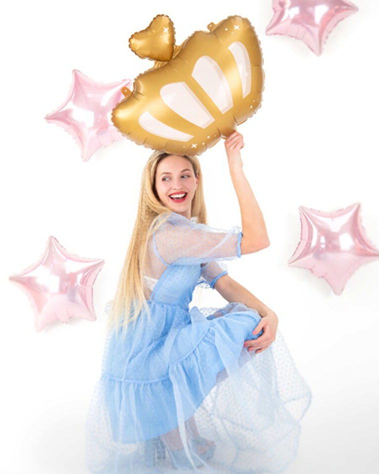 Super flot og elegant stor guld krone folieballon med fine detaljer, som vil gøre lykke til pigefødselsdagen med prinsesse tema og til andre særlige anledninger, der fortjener et majestætisk brag af en fest.