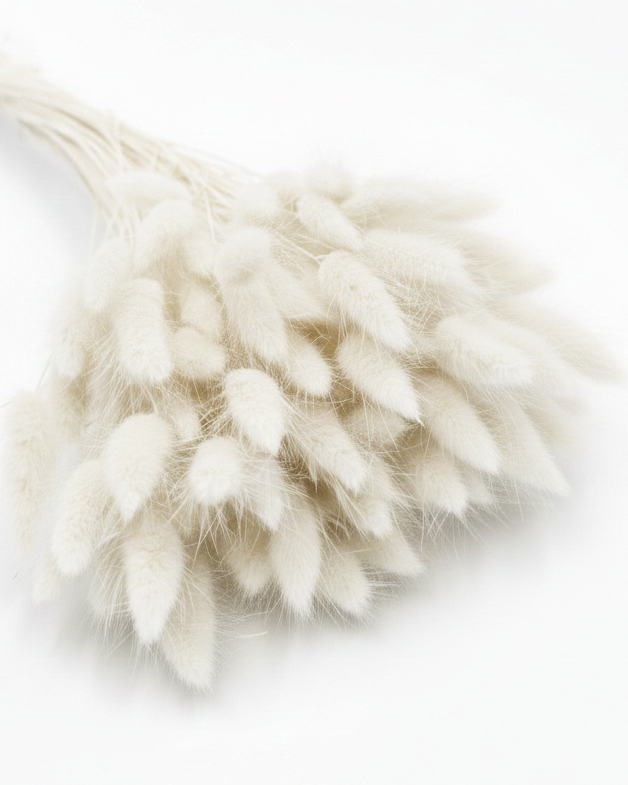 Mix også gerne de flotte hvide harehaler med andre varianter fra vores udvalg af tørrede blomster.